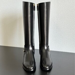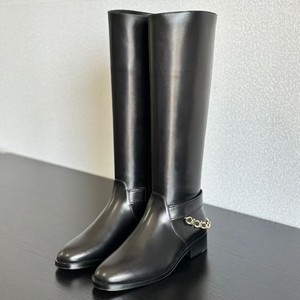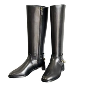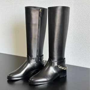 鼎版小香风经典链条骑士靴女小牛皮侧拉链及膝长靴时尚简约马丁靴