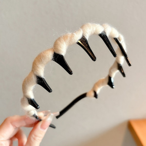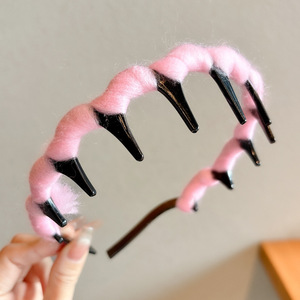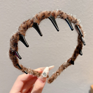 毛绒高颅顶发箍女款2025新款高级感头箍日常外戴带齿压发发卡头饰