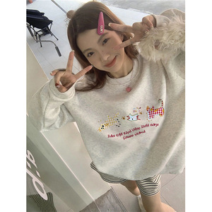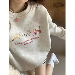 棉小个子圆领oversize卫衣女2025新款美式慵懒chic上衣长袖