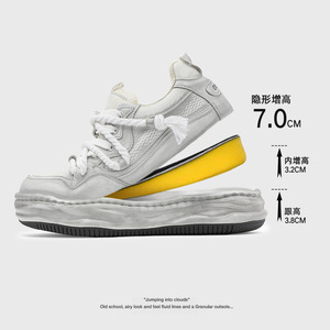 国潮小众做旧7cm隐形增高鞋男鞋子脏脏溶解鞋男女款休闲情侣板鞋