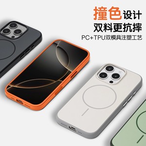 适用iPhone17手机壳撞色肤感磨砂磁吸Ai按键苹果16全包防摔保护套