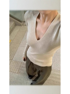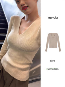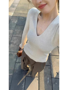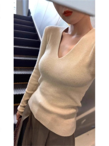 纯色v领针织打底衫女秋冬新款内搭毛衣纯欲修身显瘦百搭长袖上衣