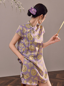 新中式国风气质印花刺绣人丝长款上衣短裤复古两件套女装 N6048