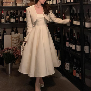 千金小香!收藏款羊毛小香女秋冬短款圆弧领外套吊带连衣裙礼服裙