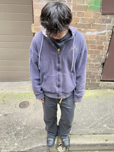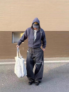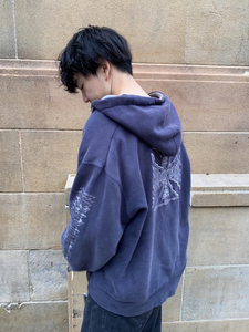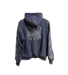 ERD风格West coast法工蓝做旧刺绣铁十字标语vintage连帽拉链卫衣