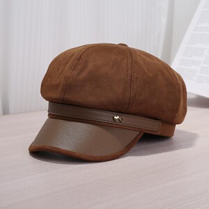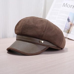 爱心标八角帽女2025新款英伦复古百搭画家帽秋冬韩版显脸小贝雷帽