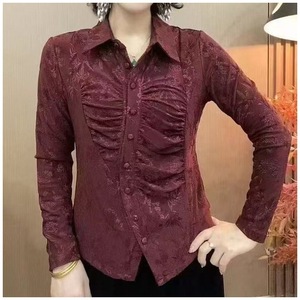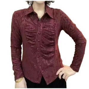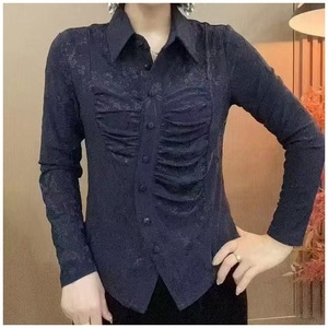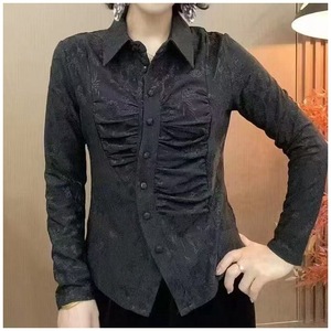一件代发 2025秋季新款翻领不规则显廋女士衬衫提花时尚气质上衣