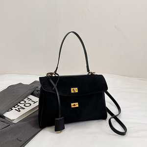 手提托特包小众慵懒风2025新款麂皮绒包包女大容量锁扣外贸单肩包