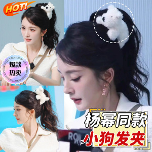 杨幂同款西高地小狗发夹白色毛茸茸鸭嘴夹气质百搭后脑勺发卡头饰