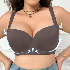 希音TK光面无痕文胸记忆钢圈大码薄款调整型聚拢上托女士内衣批发