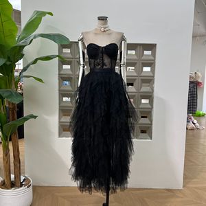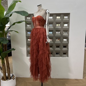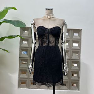 亚马逊纯欲拼接蕾丝鱼骨抹胸包臀连衣裙+海带流苏开衩长半裙2件套