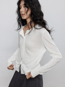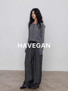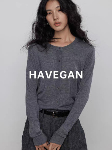 与间HAVEGAN/秋季圆领长袖羊毛针织开衫女宽松慵懒休闲气质上衣