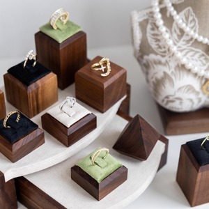 胡桃木戒指展示架绒布高级饰品戒指收纳柜台陈列架珠宝摄影道具