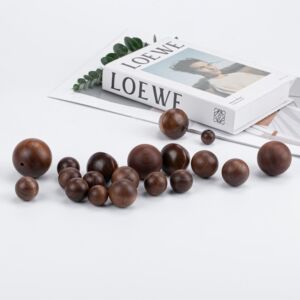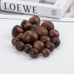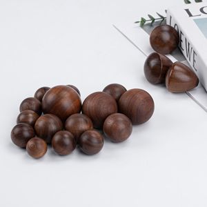 大量供应黑胡桃实木圆球手工圆木球木制散珠洞洞板挂钩单孔木拉手