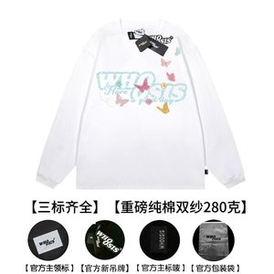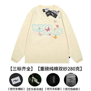 WHOOSIS(不知其名)秋冬季清新蝴蝶长袖t恤宽松重磅男女情侣ins