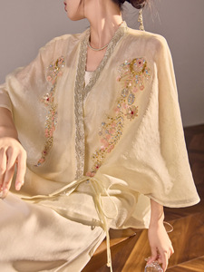时髦2025新款国风钉珠刺绣天丝上衣高端新中式开衫外套女 N6019