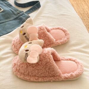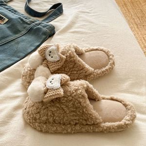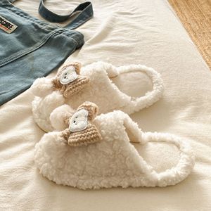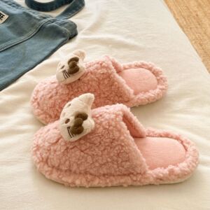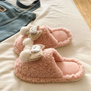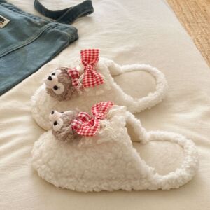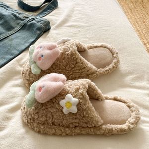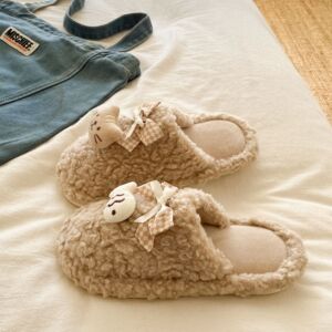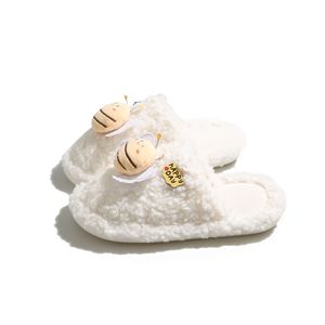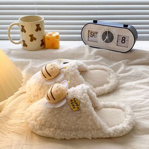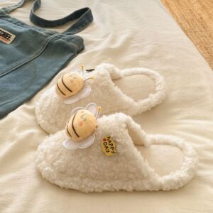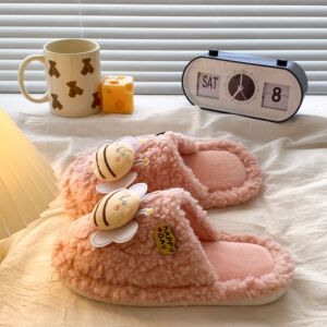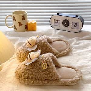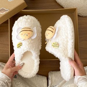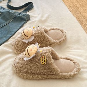 冬季户外居家女休闲软底毛毛鞋happy蜜蜂保暖轻便卡通软底棉拖鞋