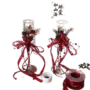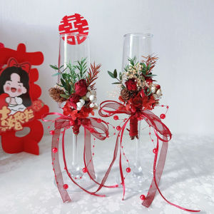 订婚新娘高脚香槟杯花艺装饰新人结婚敬酒杯敬茶杯仪式感仿真花