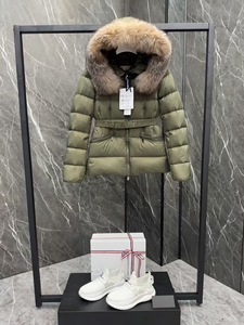 Boed蒙口羽绒服短款狐狸毛女款束腰毛皮饰边Logo徽标外套