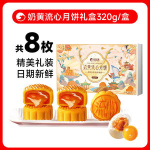 国风手提款【8枚】奶黄流心月饼礼盒320g/盒仅16.9