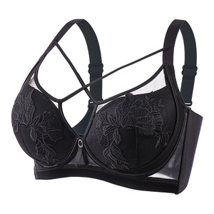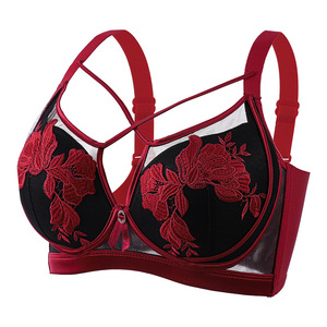 高档法式刺绣提花大胸显小聚拢收副乳无钢圈调整型美背薄杯文胸罩