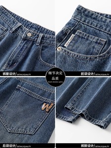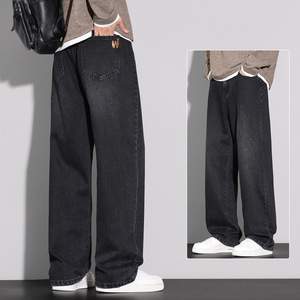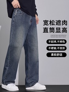 2025秋季新款牛仔裤男士宽松直筒潮牌美式复古阔腿水洗休闲长裤子