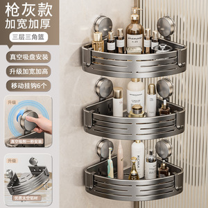 吸盘卫生间置物架浴室免打孔壁挂式厕所洗漱台洗澡间三角收纳架子
