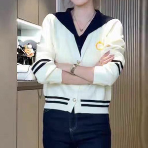 韩系学院风撞色海军领假两件针织毛衣女秋季穿搭宽松百搭洋气上衣
