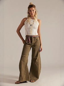 欧美外贸跨境早秋新款复古高腰阔腿牛仔裤女宽松设计长裤
