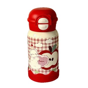 实盖红星球保温杯500ml粉格大苹果猫+硅胶杯垫