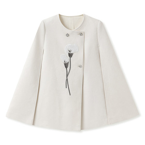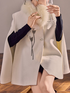 国风新中式秋冬季时尚高定刺绣宽松气质纯色羊毛斗篷披肩女 MY050