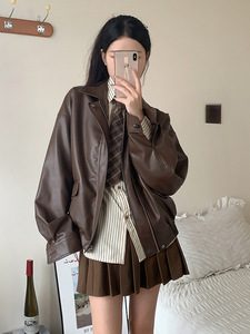 美拉德皮衣外套女男女同款春秋小个子棕色美式复古机车短款皮夹克