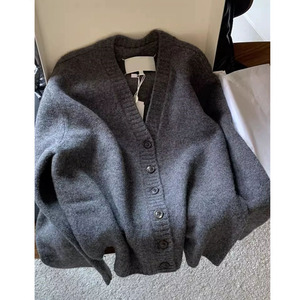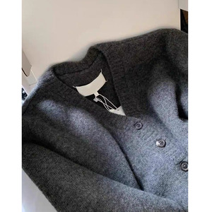 格雷系灰色v领针织开衫女秋季高级感宽松毛衣外套冬季松弛感上衣