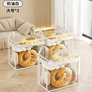 多功能手提式娃娃收纳箱玩偶公仔大容量透明整理箱拉链款展示神器