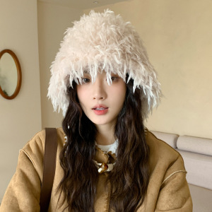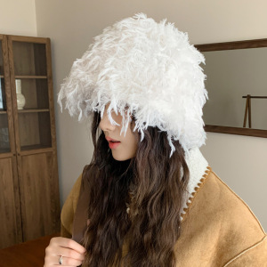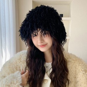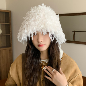 秋冬帽子女日系流苏加绒盆帽休闲百搭防寒保暖帽显脸小毛绒水桶帽