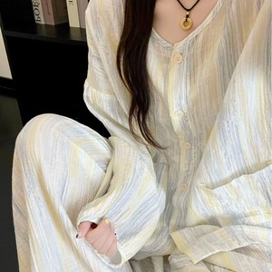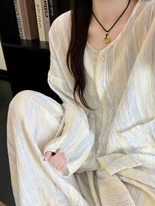 2025春秋季新款睡衣女韩版甜美开衫带胸垫家居服套装cross-border