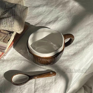 创意椰子壳咖啡杯高颜值陶瓷牛奶马克杯感小众椰壳撞色杯