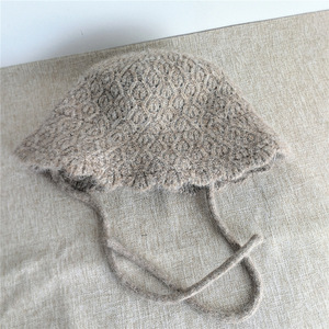 美拉德绑带针织渔夫帽女秋冬韩版百搭显脸小水桶帽大头围毛线帽子