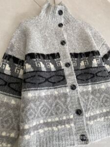 琪镌绘制费尔岛开衫外套女美式宽松慵懒风撞色高领针织毛衣88220