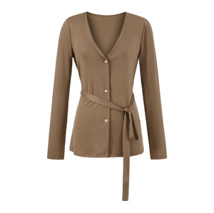 天丝长袖开衫T桖女2025秋季新款美式辣妹风纯色+挂脖背心两件套装