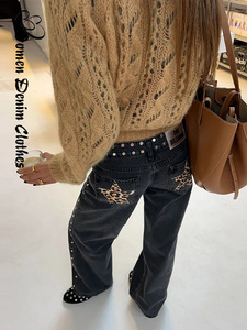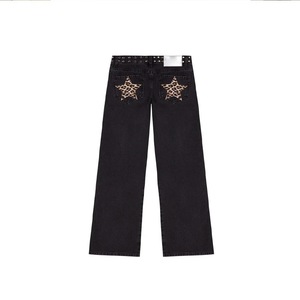 欧美跨境2025新款春夏女时尚休闲宽松高腰宽腿星星镶砖设计牛仔裤
