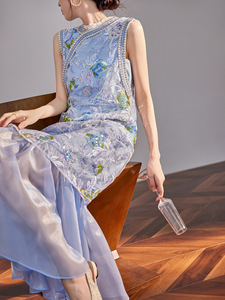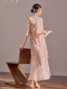 新中式国风时尚拼接连衣裙2025新款重工刺绣亮片旗袍裙女 N5042