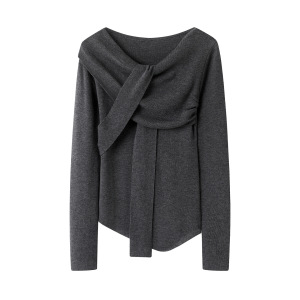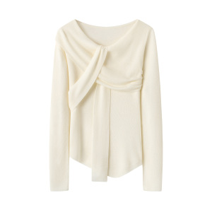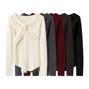法式气质温柔风毛衣2025秋冬款圆领不规则长袖针织衫打底衫上衣女