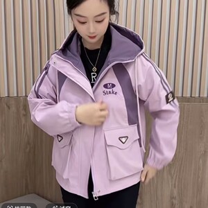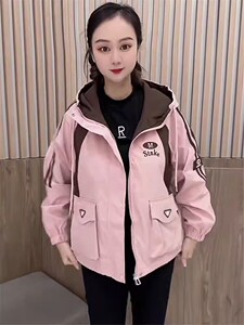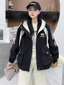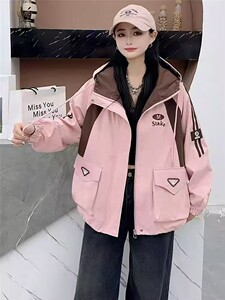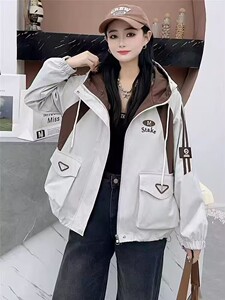 撞色拼接字母刺绣短外套女2025秋季新款宽松休闲设计感冲锋衣上衣