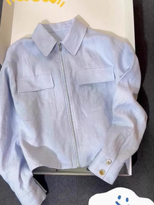 工厂2025年春秋小众穿搭韩系设计感漂亮蓝色POLO领衬衫衣