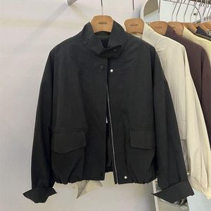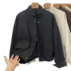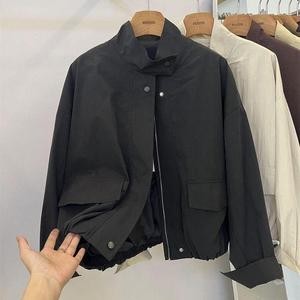 韩系短款立领冲锋衣女春秋季宽松显瘦风衣外套休闲工装夹克上衣