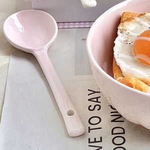 奶油色餐具陶瓷手柄勺家用耐高温一人食奶油泡面饭碗菜盘子