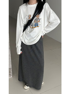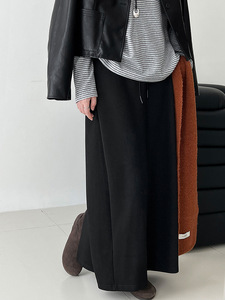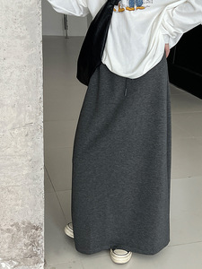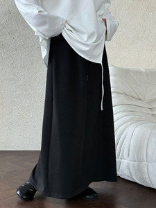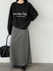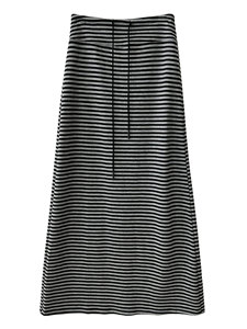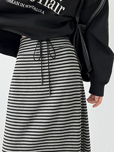 鹿西 通勤休闲慵懒高腰抽绳半身裙秋季新款垂感条纹开叉长裙2076