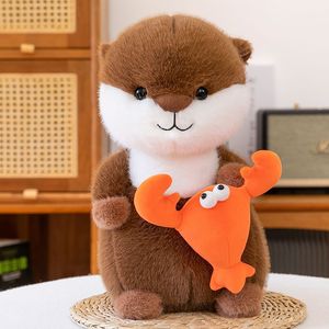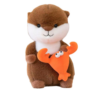 爆款外贸可爱水獭毛绒玩具贪吃龙虾儿童生日礼物女生布娃娃批发