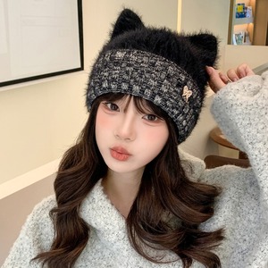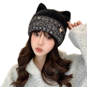 秋冬季可爱猫耳朵毛线帽子女加厚保暖户外防寒可爱舒适百搭针织帽